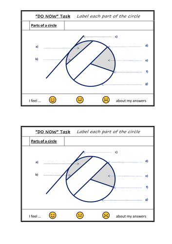 Labelling a circle - starter activity | Teaching Resources Labelling a circle - starter activity Subject: Mathematics Age range: 11-14 Resource type: Worksheet/Activity 19 reviews File previews pdf, 109.33 KB A simple starter activity on labelling parts of a circle (with answers). Credit to mistrym03 for the idea which can be found in the following lesson Click here Creative Commons "Sharealike"