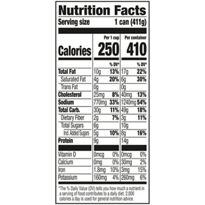 Chef Boyardee® Spaghetti & Meatballs, 14.5 oz - Kroger 260 calories per serving With no artificial flavors, colors, or preservatives, Chef Boyardee makes a wholesome meal for kids of ALL ages. Nutritional Information OptUP® Nutrition Rating Learn More Nutrition Facts servings per container Serving size 1can (411 gram) Amount per serving Calories 410 % Daily value* Total Fat 17g 21.79% Spaghettios Calories, Carbs & Nutrition Facts | MyFitnessPal Chef Boyardee Spaghettios Serving Size: 1 cup 170 Cal 80% 33g Carbs 5% 1g Fat 15% 6g Protein Track macros, calories, and more with MyFitnessPal. Join for free! Daily Goals How does this food fit into your daily goals? Calorie Goal 1830 Cal 170/2000Cal left Fitness Goals: Heart Healthy Fat 66 g 1/67g left Sodium 1450 mg 850/2300mg left