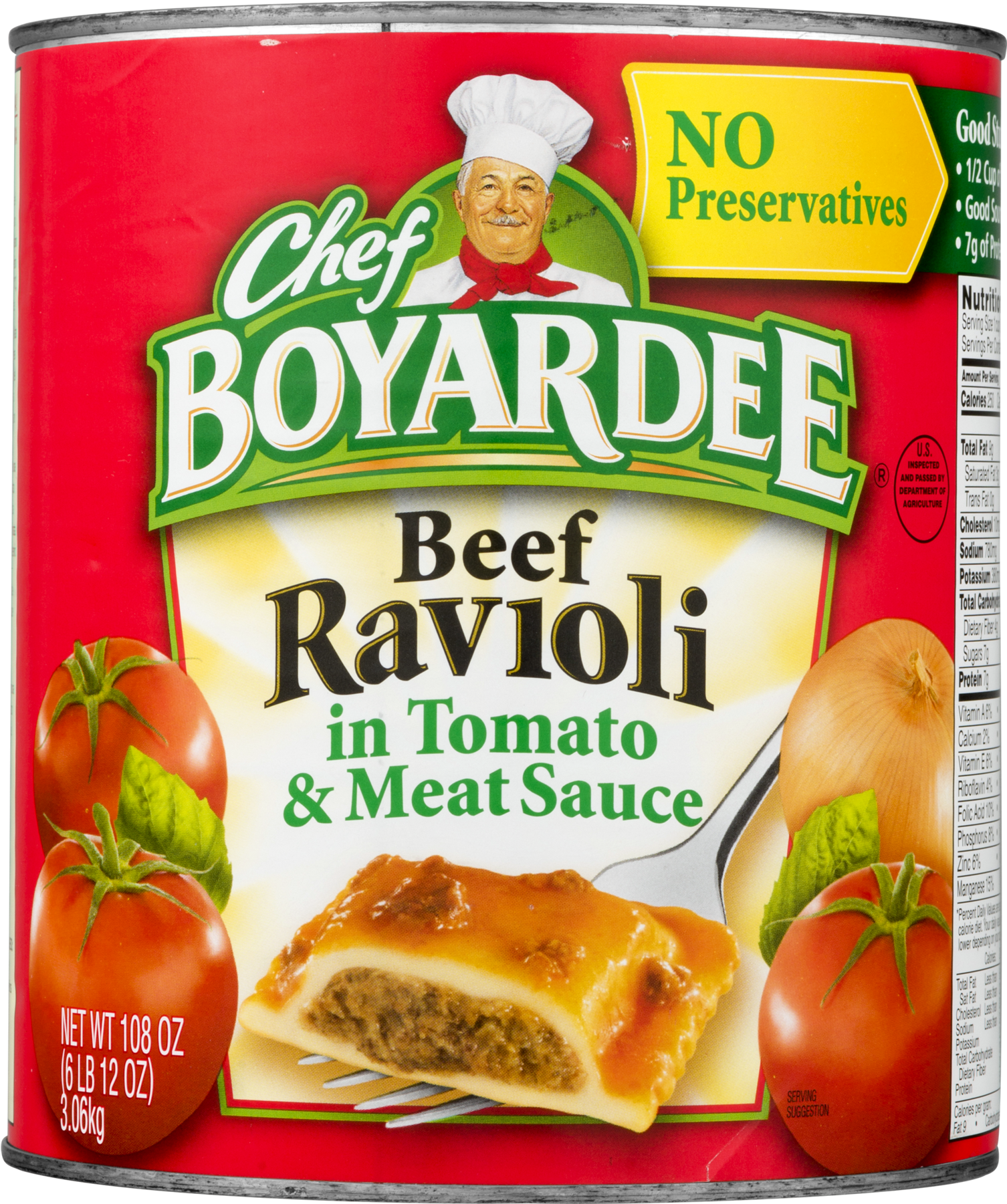 Chef Boyardee: 12-Pack 15-Oz Overstuffed Beef Ravioli or 7.5 ... - Reddit Chef Boyardee: 12-Pack 15-Oz Overstuffed Beef Ravioli or 7.5-Oz Lasagna $12 w/ S&S + Free S&H w/ Prime or $25+ amazon comments sorted by Best Top New Controversial Q&A Add a Comment sorted by Best Top New Controversial Q&A Add a Comment Chef Boyardee in Tomato & Meat Sauce Beef Ravioli 108 Oz - eBay Find many great new & used options and get the best deals for Chef Boyardee in Tomato & Meat Sauce Beef Ravioli 108 Oz at the best online prices at eBay! Free shipping for many products! ... Chef Boyardee in Tomato & Meat Sauce Beef Ravioli 108 Oz. 4.0 out of 5 stars 1 product rating Expand: Ratings. 4.0 average based on 1 product rating. 5. 0 ...