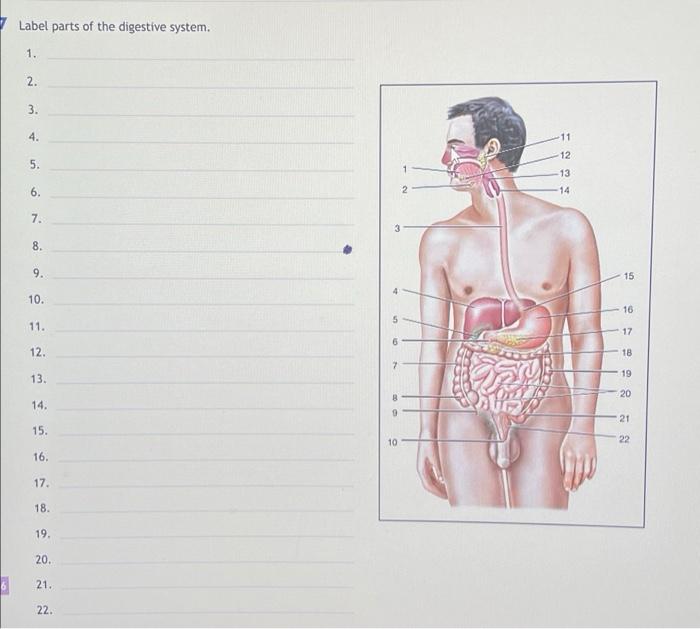 Label the diagram of digestive system; - Byju's Label the diagram of digestive system; · A. 1- Mouth, 2- Pharynx , 3- Oesophagus , 4- Stomach, 5- Jejunum, 6- Small Intestine, 7- Anus · B 1- Pharynx, 2- Mouth , ...